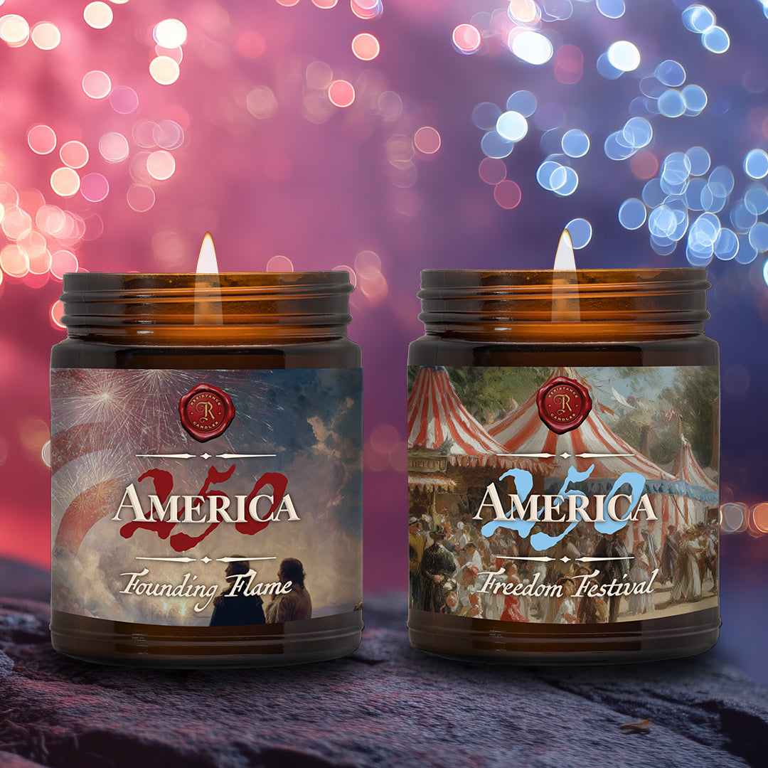 Created to honor 250 years of American independence, the America 250 Bundle celebrates the courage that ignited our nation. From the first sparks of freedom to the spirited festivals that filled city streets, these two candles reflect the heart of America’s beginning and of true patriotism.